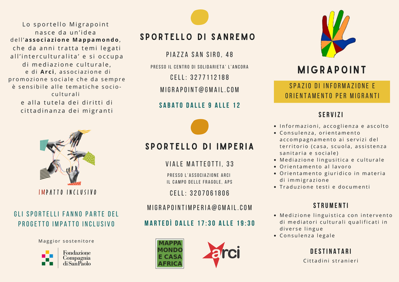 dell'associazione Mappamondo, che da anni tratta temi legati all'interculturalità e si occupa di mediazione culturale, e di ARCI provinciale Imperia, associazione di promozione sociale che da sempre è sensibile alle tematiche